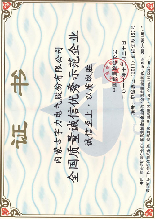 全國質量誠信優(yōu)秀示范企業(yè)