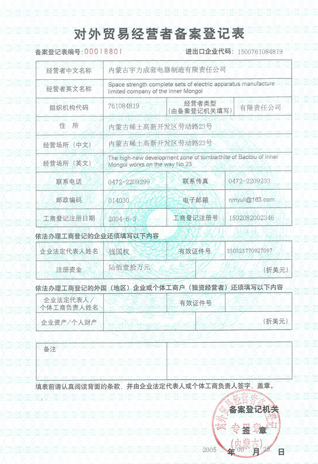 對外貿易經營者備案登記表