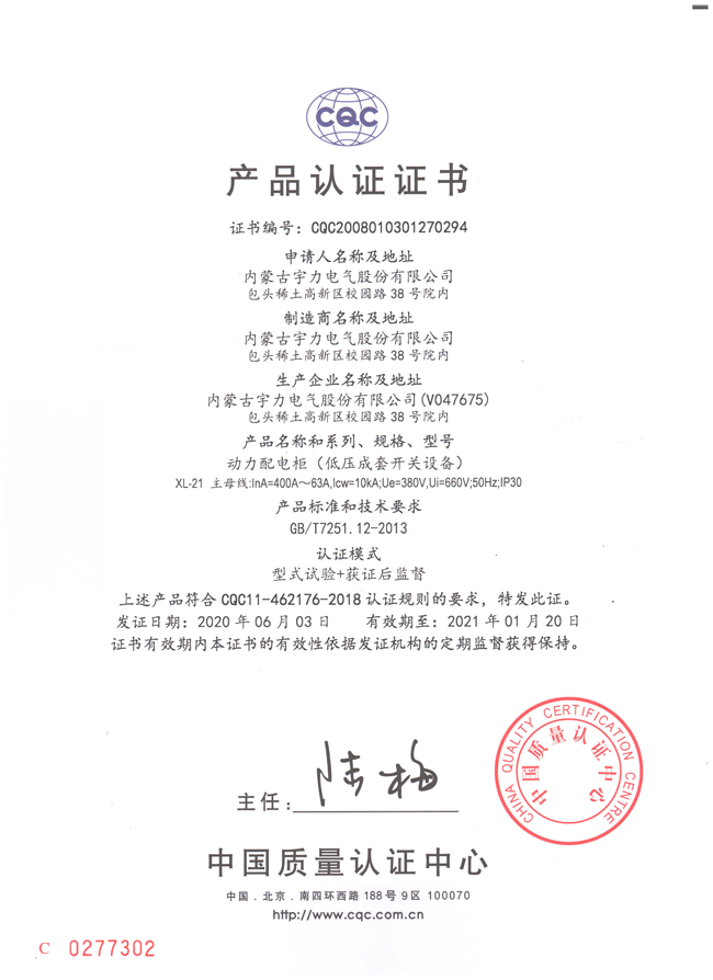 XL-21動(dòng)力配電柜(CQC認(rèn)證)