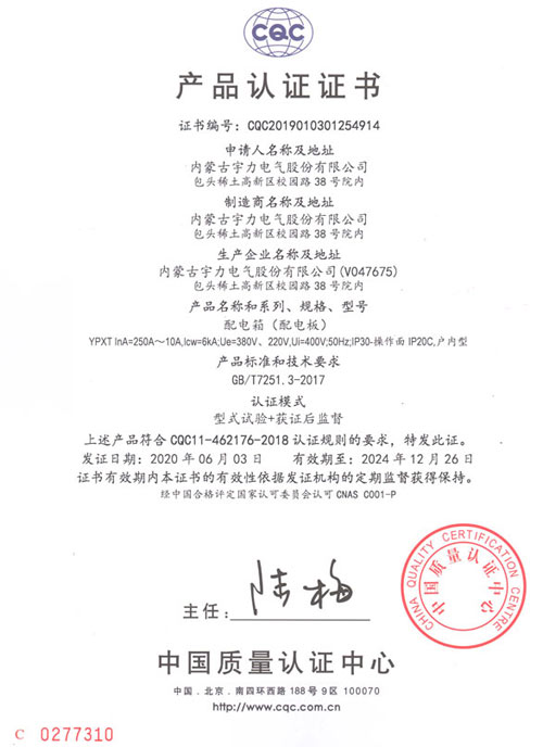 YGGD2交流低壓配電柜(CQC認(rèn)證)