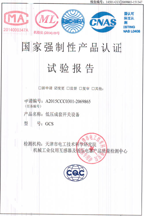 GCS低壓成套開關(guān)設(shè)備(試驗(yàn)報(bào)告)