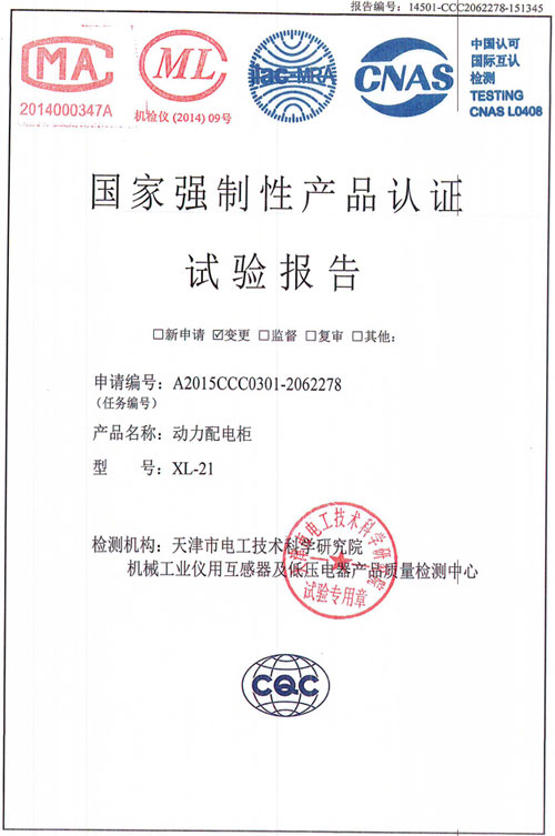 XL-21動(dòng)力配電柜(試驗(yàn)報(bào)告)
