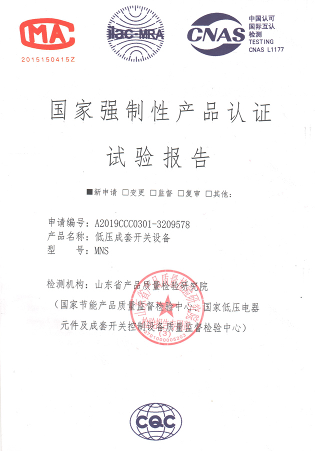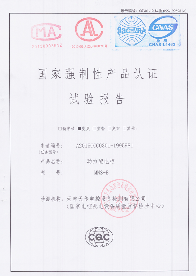 MNS-E動(dòng)力配電柜(試驗(yàn)報(bào)告)