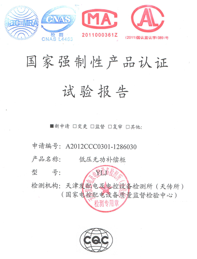 YLJ低壓無功補(bǔ)償柜(試驗(yàn)報(bào)告)