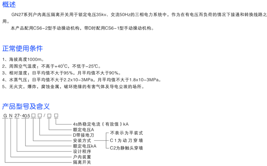 GN27系列戶(hù)內(nèi)高壓隔離開(kāi)關(guān)