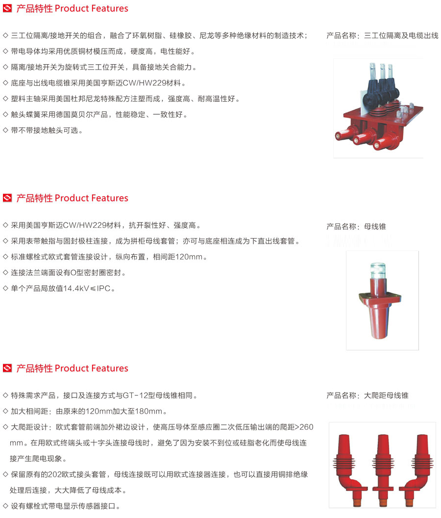 由于該產品具有全絕緣、全密封、全屏蔽的優(yōu)點,所以特別適用于高海拔、高溫、濕熱、嚴寒、污染嚴重等壞境惡劣的地區(qū)使用。