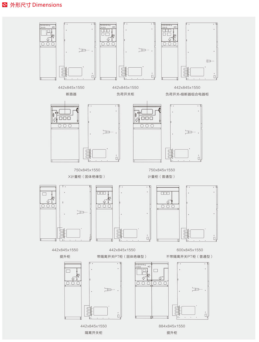 單體柜結構,全系列產品統(tǒng)一設計,提供用戶需要的多種柜型,而且外形幾何尺寸完全一致。采用專業(yè)電纜附件廠商生產的通用 絕緣母線,電纜插拔頭。開關柜可現(xiàn)場組合,隨意擴展,避免了多組組合拒帶來的運輸,安裝的不便。如果用戶要求也可提供組合柜。