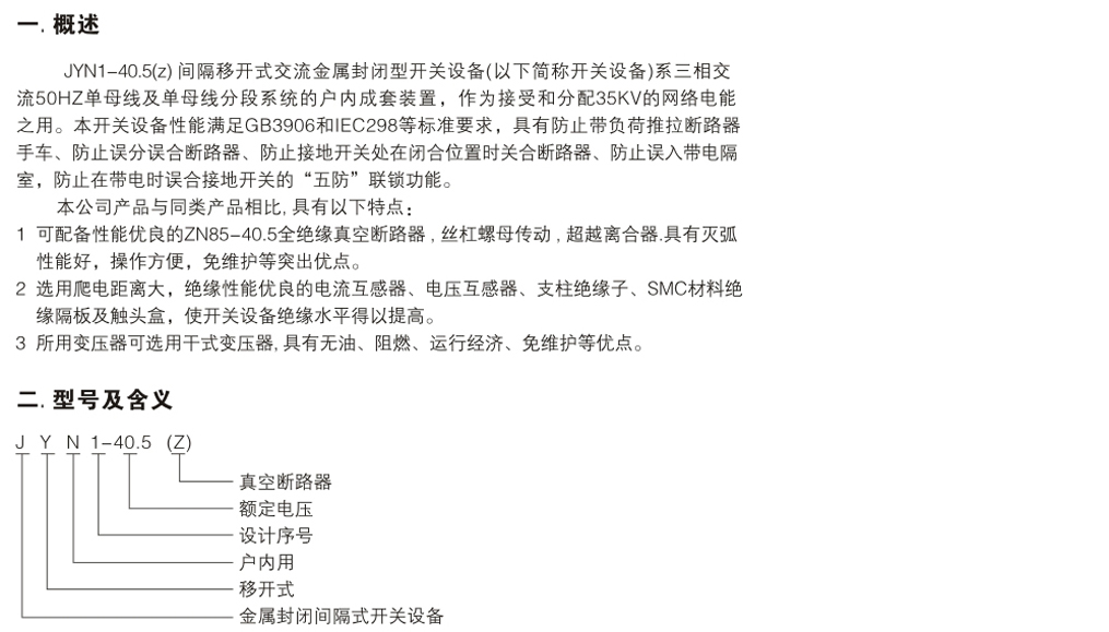 JYN1-40.5(Z)型間隔移開式交流金屬封閉型開關(guān)設(shè)備