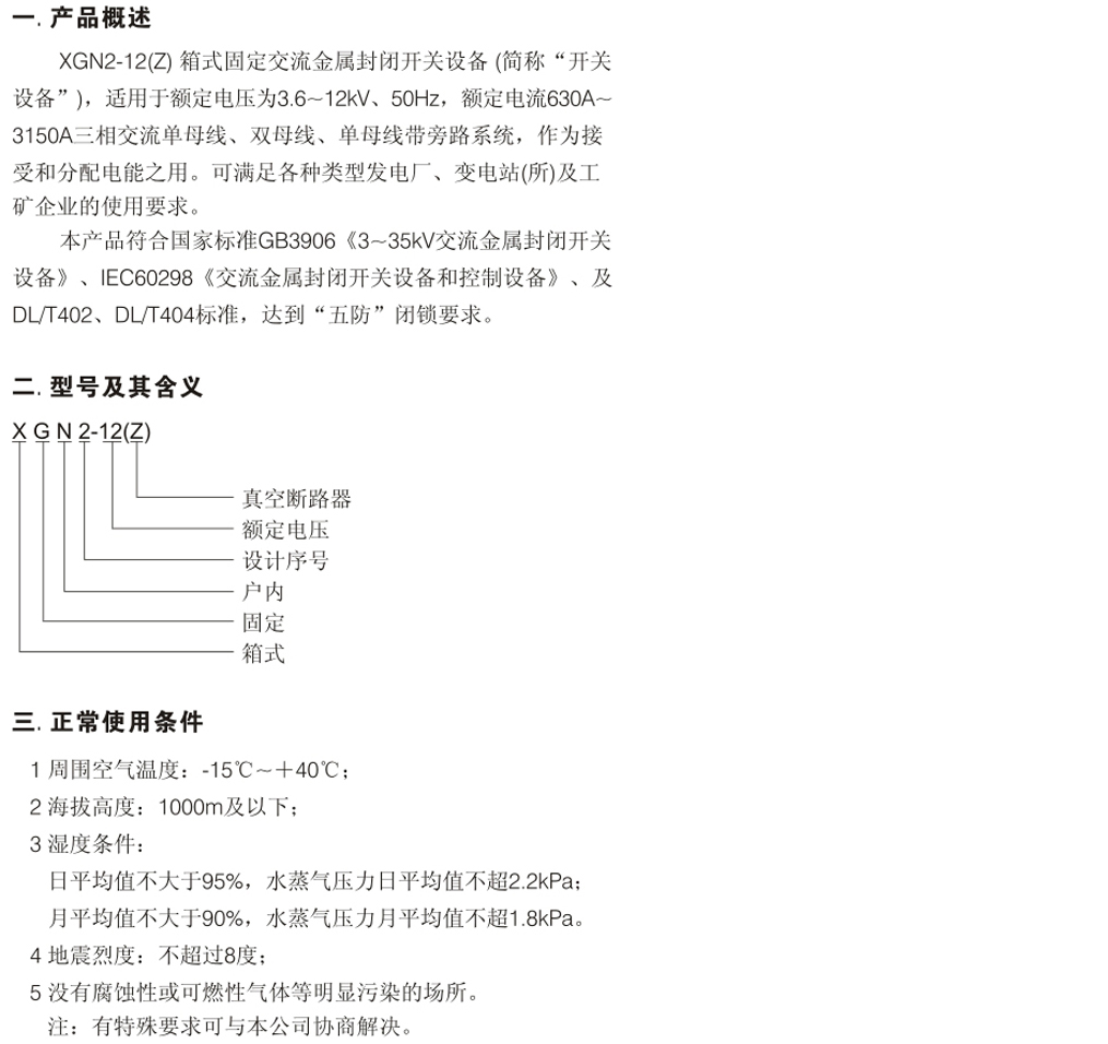 XGN2-12(Z)箱型固定交流金屬封閉開(kāi)關(guān)設(shè)備